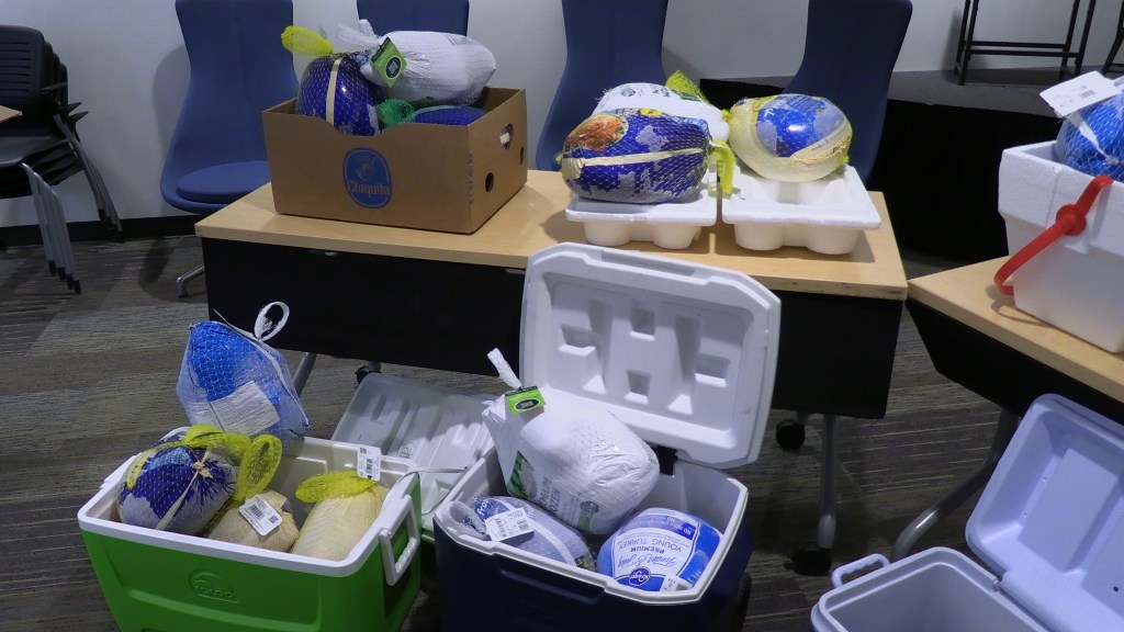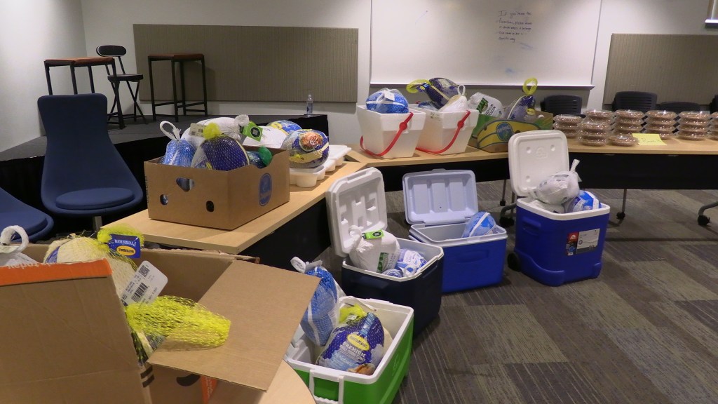 Despite the event being successful, the Food Pantry still has a few extra turkeys and pumpkin pie available for anyone to pick up within Student Life.